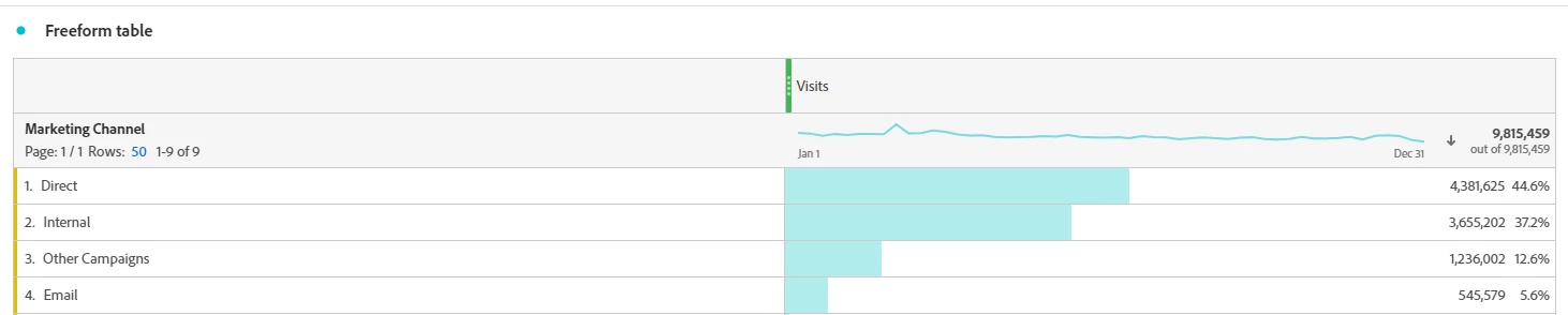 1. When I'm making report in workspace the numbers I'm getting in marketing channel-Email are too less comparing to page URL link instances number.