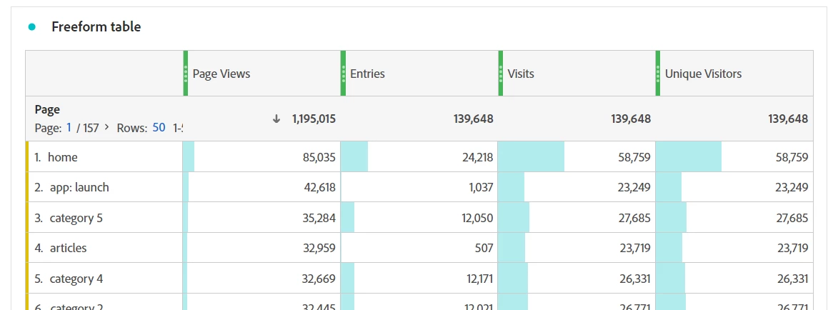 There is also an Entries metric. For a given dimension, Entries records the first element seen for that dimension as an entry. Only one entry exists per dimension per visit. Entry is a dimension based metric rather than a visit based metric. It is not necessarily the first hit of the visit if a dimension item is not initially set in the visit. Once set for a dimension item, the value is persisted for the rest of the visit.