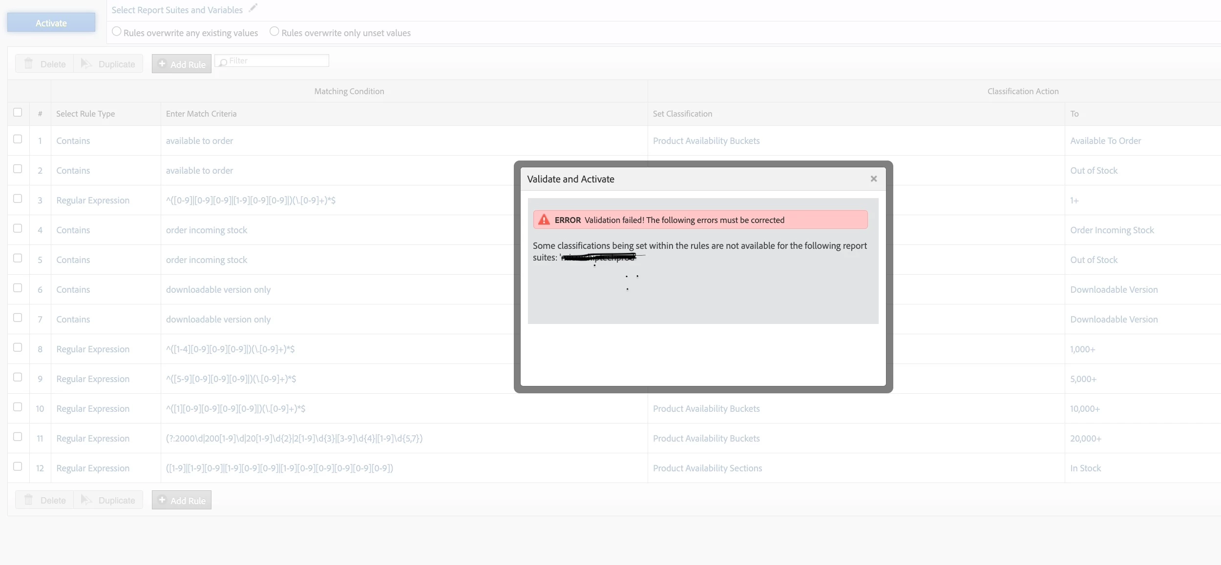 I have a classification rule built as below. I am able to validate this rule however I am not able to activate this rule wit multiple classifications level
