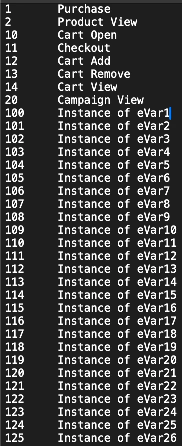 I'm having trouble understanding the event_list dimension in Adobe downstream data. On this page: https://experienceleague.adobe.com/en/docs/analytics/export/analytics-data-feed/data-feed-contents/datafeeds-reference, it says it should be events 1-1000 that are customized. However, we see events like 200 something and 100 something and that doesn't make sense to me. We only have events between 1-100. Here is a screenshot of what we see.