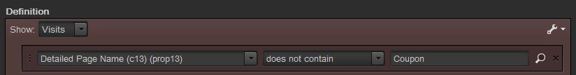 1st time, I use the segment: visit level, pagename does not contain "coupon". but I still can see page: "coupon" is listed with visits.