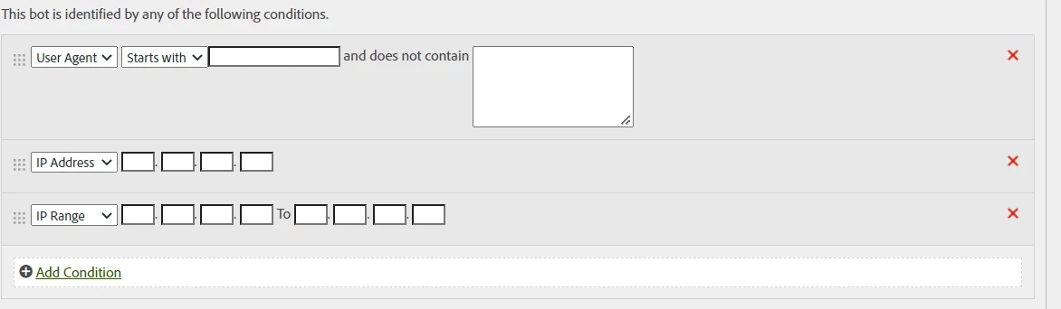 Give the rule a name (this is the name that will appear in your Bot Reports, so it helps you to monitor what is being blocked and how often they are hitting your site.. so using a name that accurately describes it, especially if you add multiple rules.)