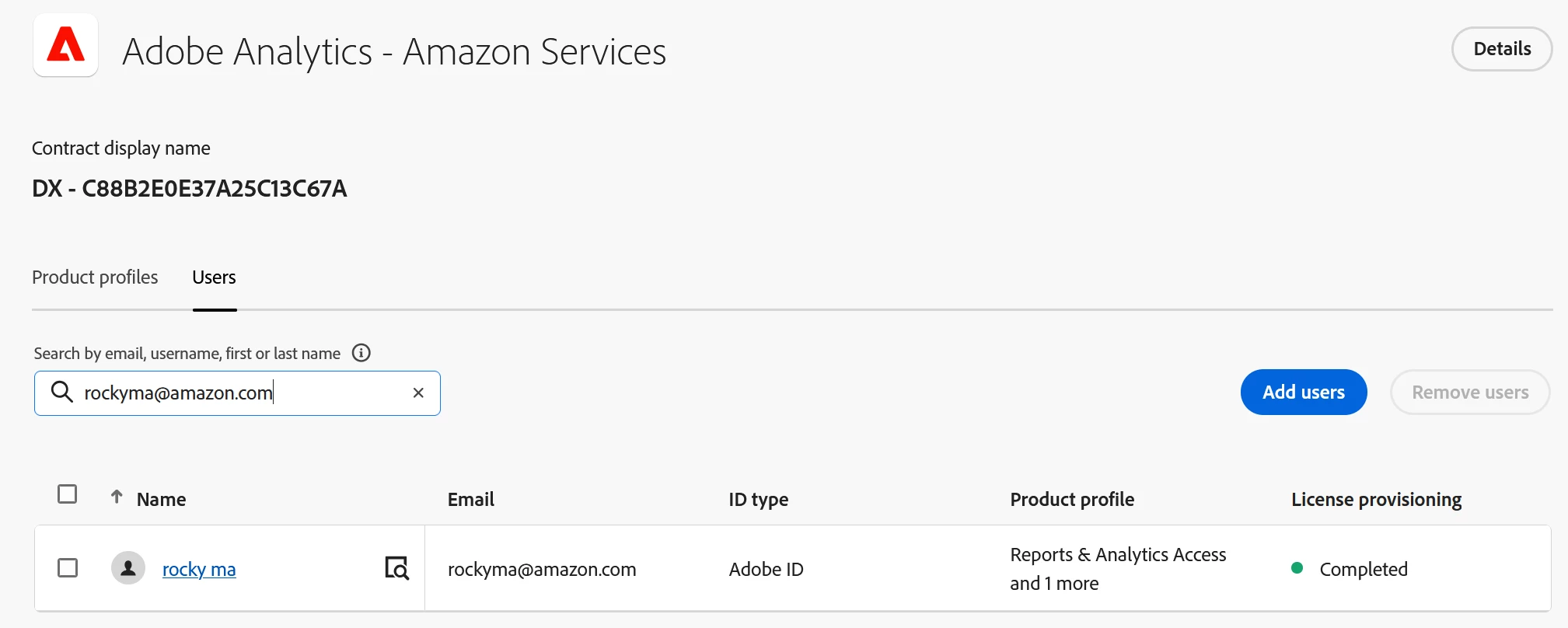 I have tried to grant Adobe Analytics access permissions to two CN colleagues (Ni, Robyn nirubing@amazon.com; Ma, Rocky rockyma@amazon.com ) using admin privileges. While I can see in the system that the permissions have been set up successfully(appendix1), both colleagues are still unable to access Adobe Analytics reports (appendix2).