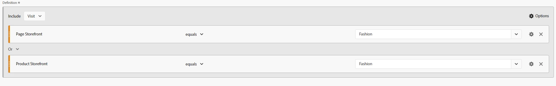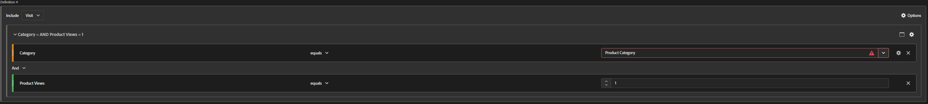 Example definition of a Quick Segment used: