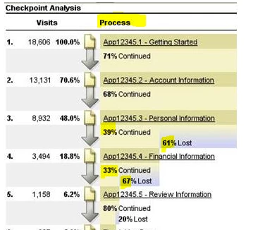 step 4 vists / step 3 visits (ie 3494/8932 = 39%) etc.