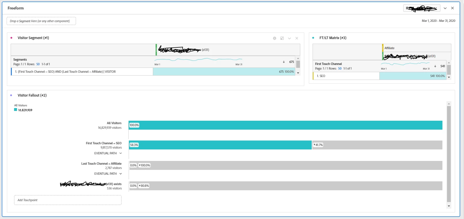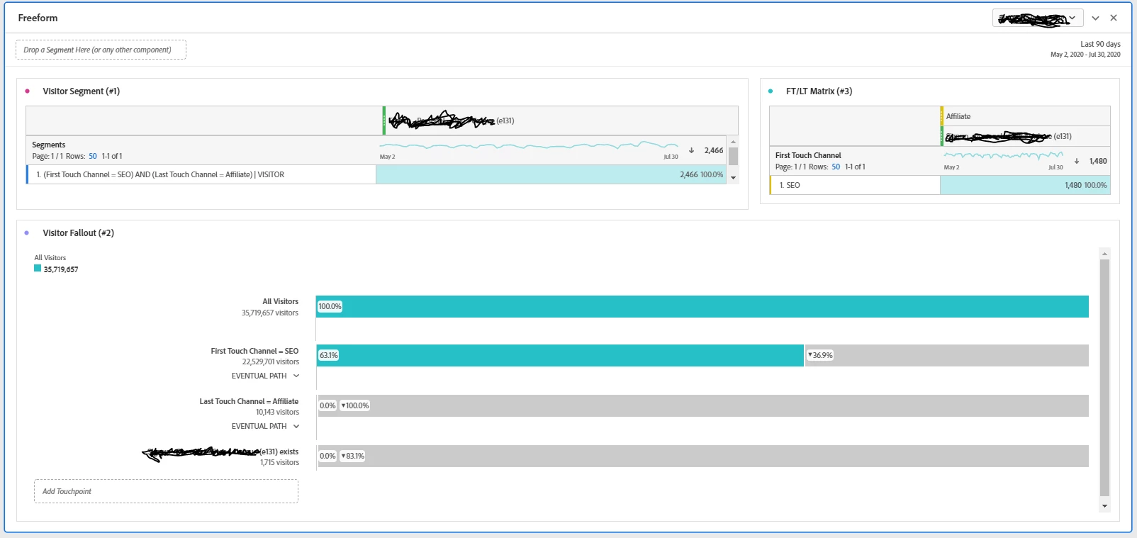 I've been exploring ways to view First Touch/Last Touch marketing channel data, and how the selected date range impacts these reports. I've explored this three different ways so far with reference to one of our custom events, e131: 1) Visitor-level segmentation, 2) Visitor-level Fallout and 3) First Touch/Last touch reporting matrix.