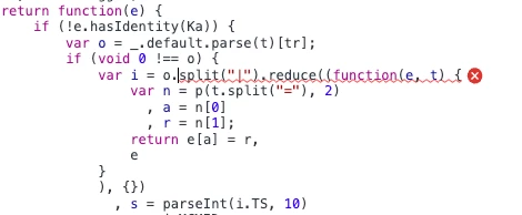 This kept the page from working. Investigation showed the root of the problem was the adobe_mc parameter had been appended to the URL twice (by accident). The code that parses the parameter value does not do a type check after getting the parameter, and when there are more than one instance of a parameter it is represented by an array instead of a string. The code attempts to do a split() operation, but since the type is Array the exception is thrown.