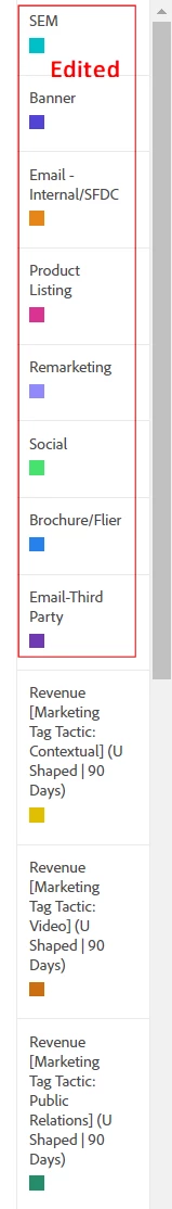 Would give you these legends: Marketing Tag Tactic: SEM, Marketing Tag Tactic: Banner, etc.