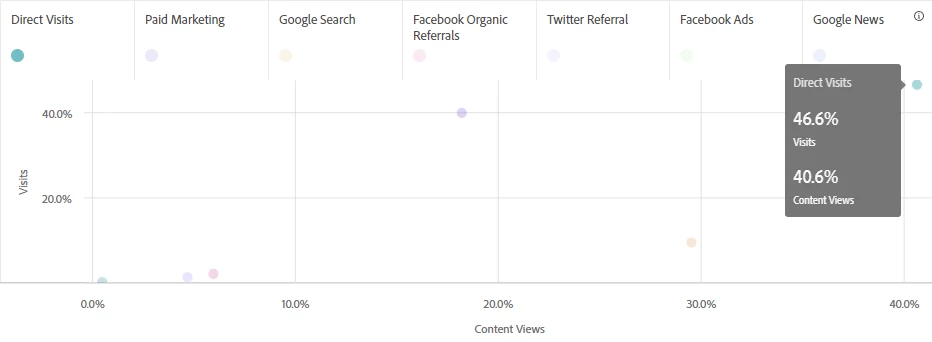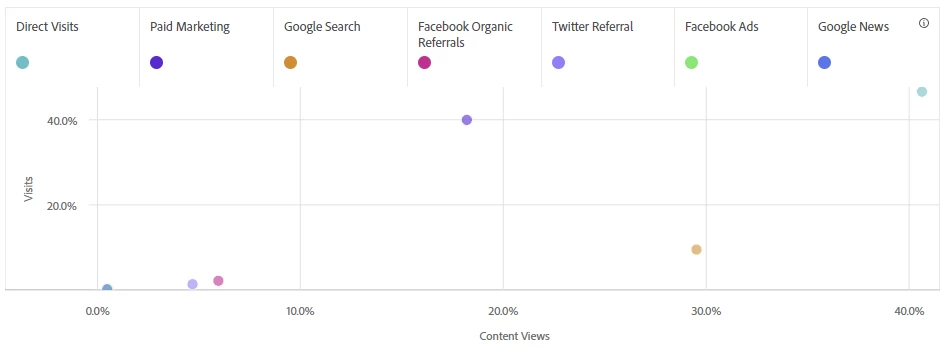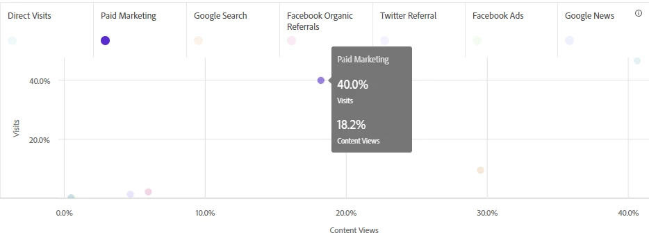 On the other hand, the newsroom may need to make adjustments to its paid marketing campaigns. Those efforts generated almost half of traffic, but they are not effective in converting those visits to content views.