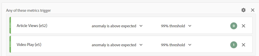 If your Adobe Analytics instance has access to Intelligent Alerts, I found the best way to create the viral content alerts is to trigger them by using anomalies. In this case, you will want to trigger the alert if a key content consumption metric, such as an article view or video play, is an anomaly based on a high threshold.