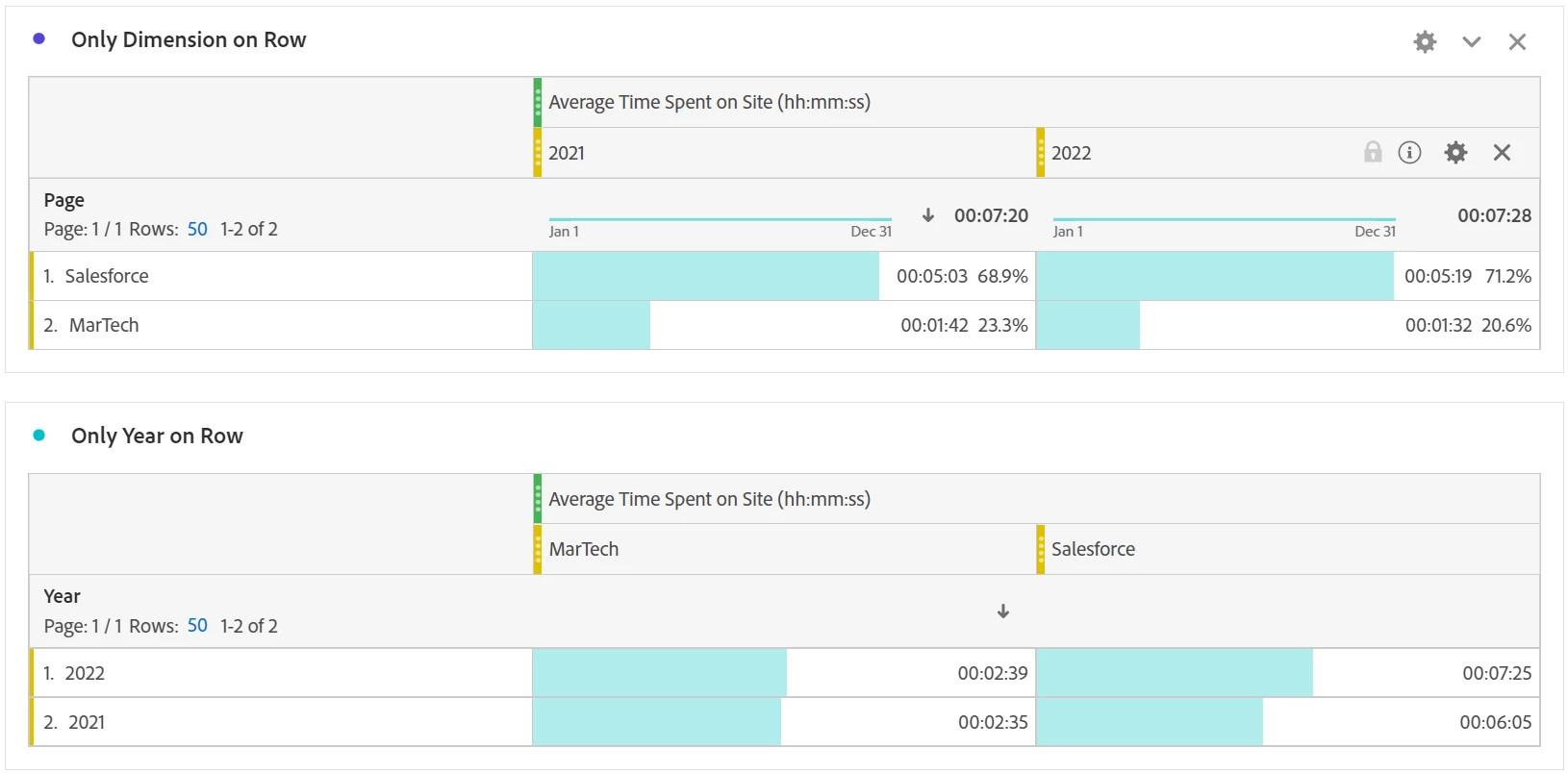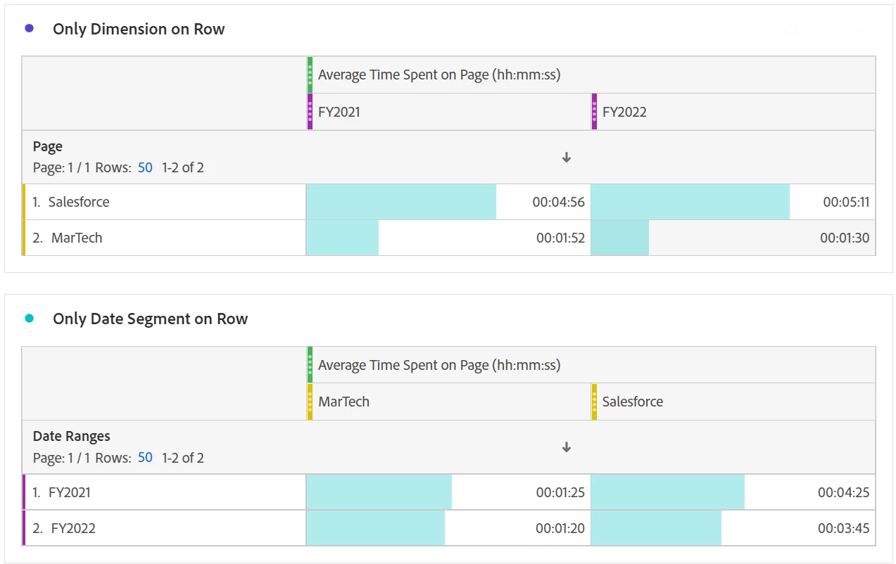 I was exploring in Analytics Workspace and noticed that the below tables produce different values when I put date ranges on rows than they do when I put dimension selection on rows. This surprised me and I don't know how to interpret the difference. Can anybody explain this to me? Thank you!