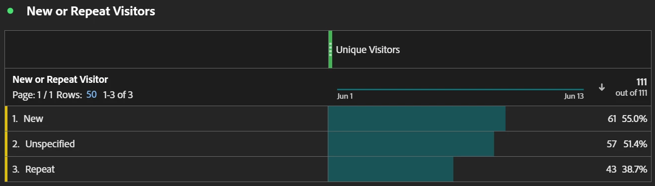 I have implemented getNewRepeat plugin, however, it is showing a lot of 'unspecified' values. When I check in the debugger I do see visits as 'New' or 'Repeat' what can be the reason for 'unspecified' values? I tried to debug also but do not see any pattern with particular pages for the same pages I see New and Repeat values.