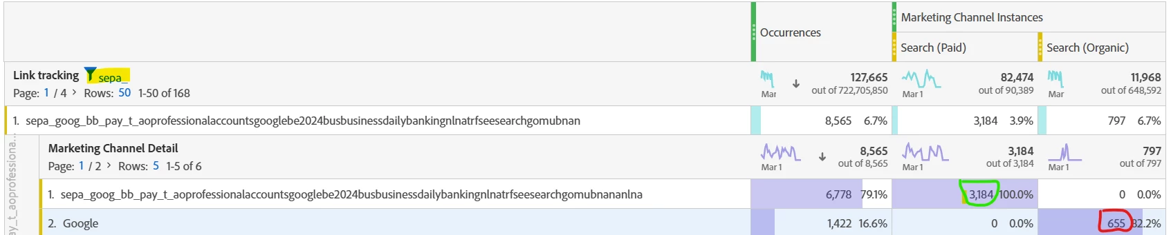 The marketing channel, even if the URL parameter mcing starts with sepa is not always linked to Search Paid.