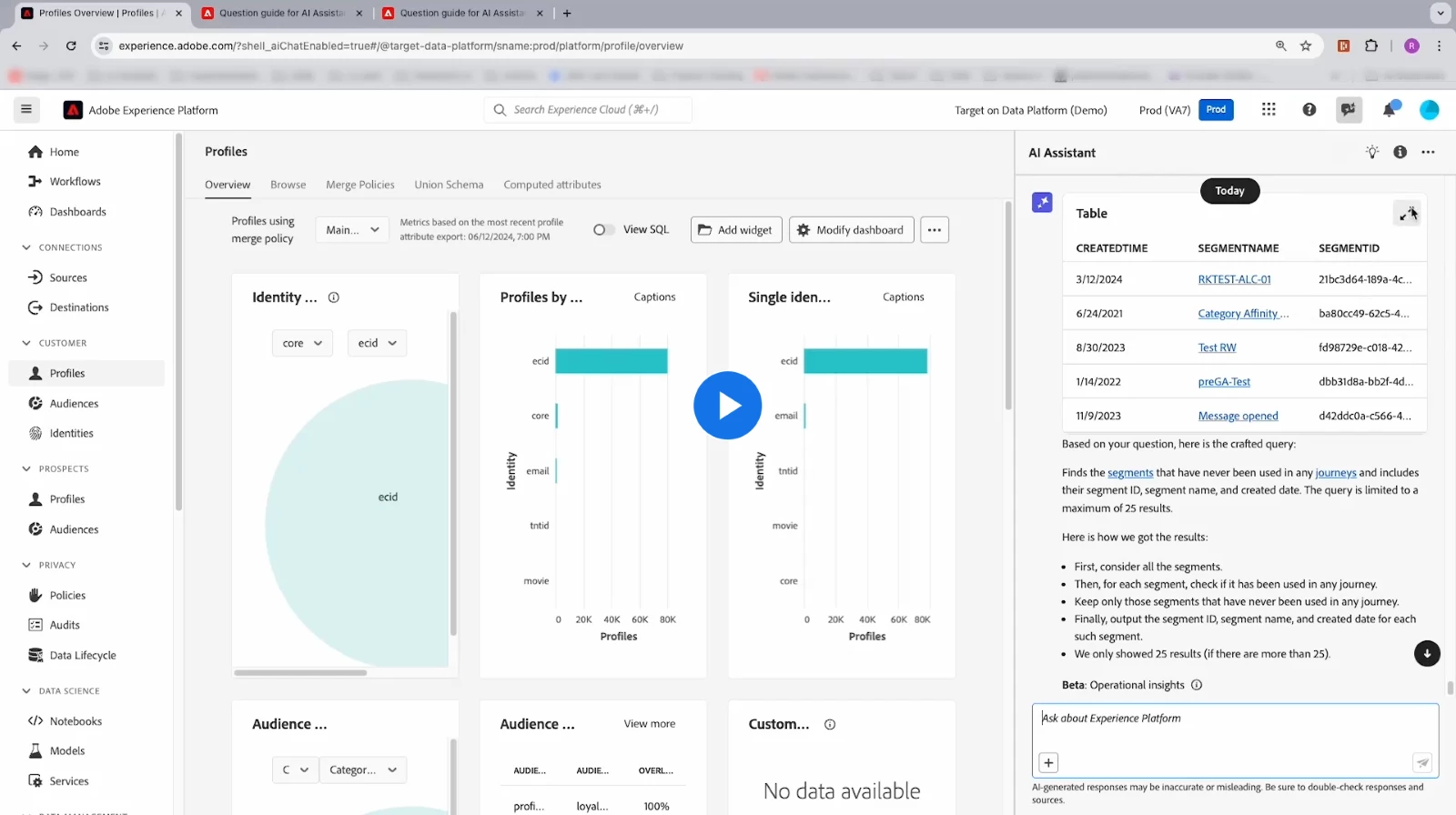 Inside Adobe Experience Platform solutions like Customer Journey Analytics, GenAI already supports users in improving their understanding of the tool through prompt-based interaction.
