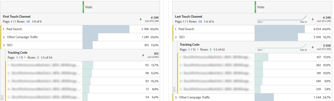 How can I explain tracking code in First Touch Channel = SEO?