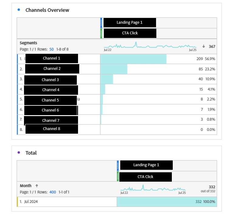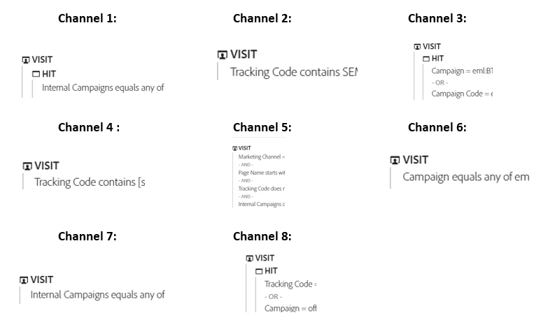 So I have a landing page which users can arrive on through a variety of different marketing campaigns in place. I have created separate segments for each of these campaigns, which are tracked by SCIDs.
