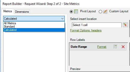 Can anyone please help me with an idea that how can we able to get the measures values in report builder as like metrics while creating a request in excel?