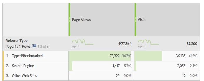 Therefore, I have added in a Workspace project the standard "Referrer Type" segment:
