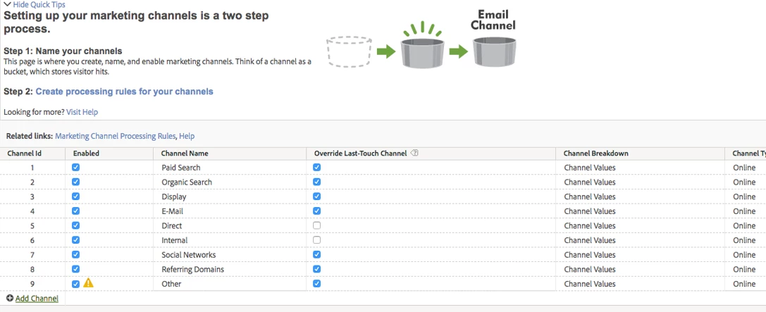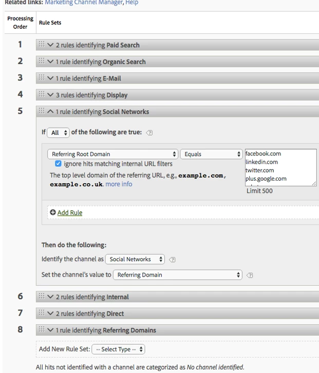 But as you can see, the are no social media channels listed - although they are defined in the report suit manager: