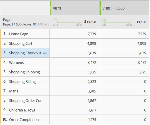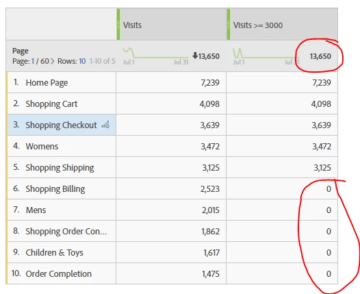 How to display only those record(say page url) in table which have visit count greater than x(say 1000)