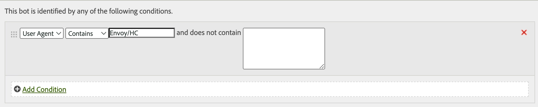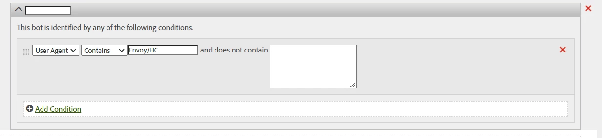 Have you tried contains "Envoy", that doesn't seem like it would show up in a lot of other user agents.... (this at least can check if the / is confusing things)