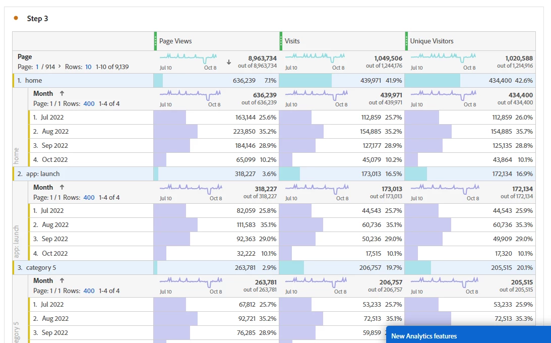 On an analysis workspace I want to display all the same breakdwon levels in all the data displayed initially doing it in an automatic way not going one by one doing it manually.