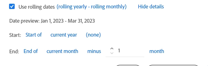 The view that I would like is to only have the numbers from the months last year that can have also occured this year - i.e., to remove the observations of May, June etc - and their contribution to the summary number at the top - until they come to pass. Is there a way to do this?