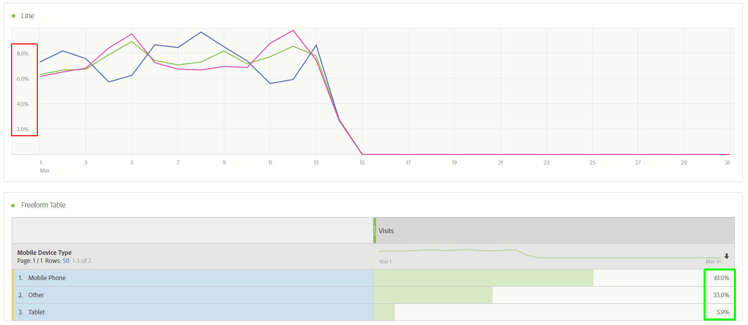 If I have 30% of users that do something yesterday and today, the percentage should show 30% yesterday and 30% today. Workspace shows 50% and 50% !!