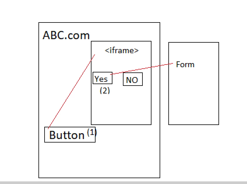 For website ABC.COM, in a page when user click on BUTTON (1), iframe pop up will be open, in that when click on YES (2), it will open form. for reference please check the below screenshot.