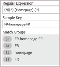 This assumes we're looking for the "Homepage" value, you always have three (3) parts to the value coming in, and there are only two (2) dashes/hyphens in the string. The leading "(?i)" ensures this is a case-insensitive search (so both "Homepage" and "homepage" would match). The result should be four (4) total match groups, with $0 always representing the original value as shown in the sample image above.