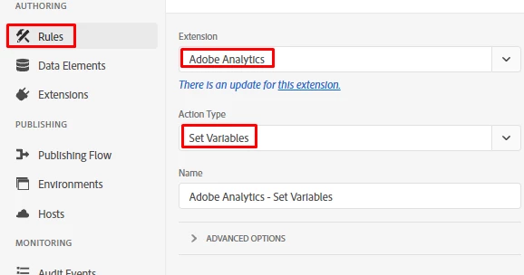Then further you can set variables, in which you can define which evar, prop and event should capture value when this event occurs.