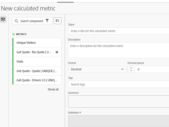 I am trying to build calculated metric with segment and metric , but am seeing only Metric not Dimensions and Segments. could any one please help what is the problem and how to get those