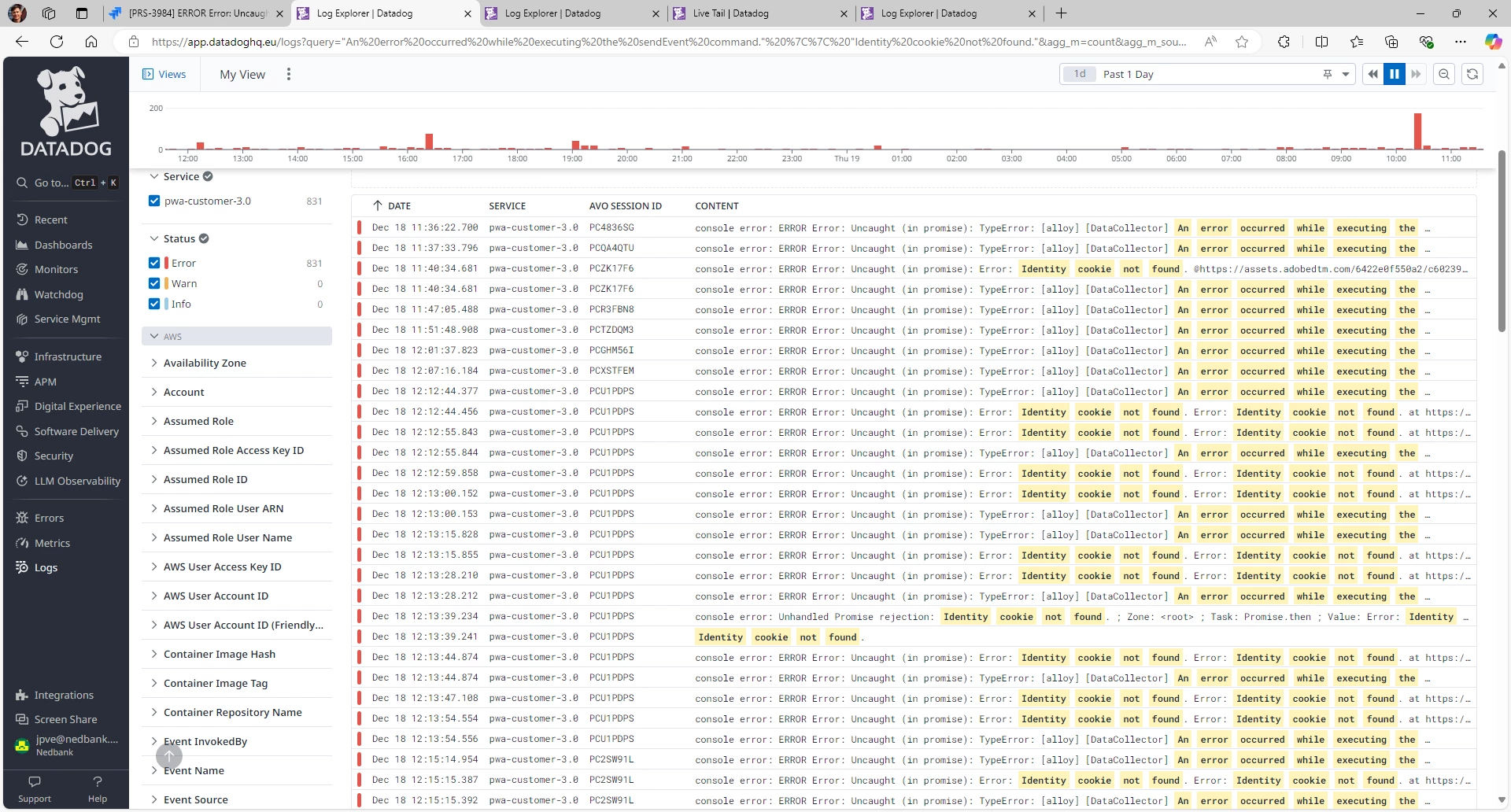 Our ecommerce website is getting substantial reports in dataDog logs (831 in the past day) for:
