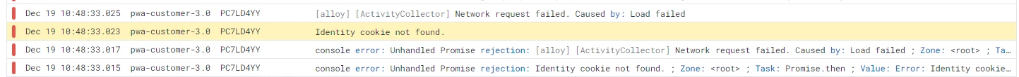 Identity cookie and sendEvent errors (Uncaught in promise)