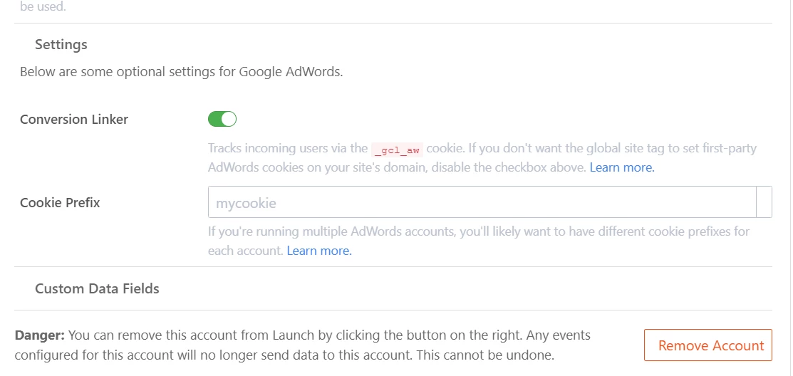 The Conversion Linker is available once you have the account added, still in the Extension configuration:
