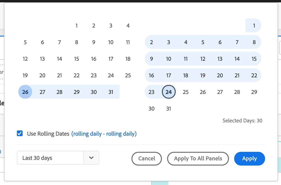 On relatively small screens (13 inches) the Date Range dialog gets cut off and the vertical scroll bar is not visible. This looks confusing especially for new AA users as they can't recognize where to click Apply. See the screenshots below.