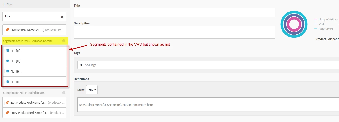 Also when creating a new metrics, it is quite misleading to use the segment as they are marked as "not contained in the ...VRS name."