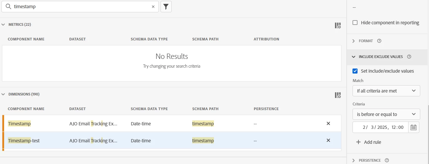 I'm trying to build a filter in CJA where the attribute is checking for the date in last 6 months, but we don't have "In last" as a preset in CJA. When I tried to build a component in dataview, we don't have the feasibility to use this option either as it only allows hardcoded dates under the Include/exclude values.P.S the snip of the same.