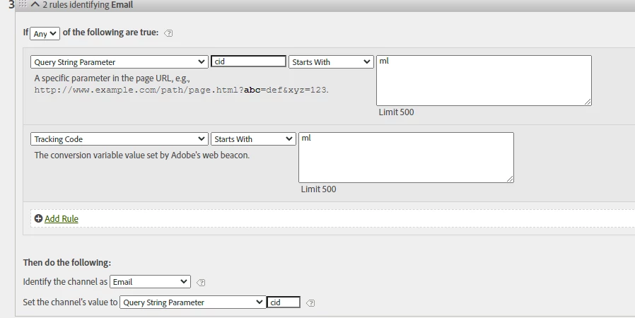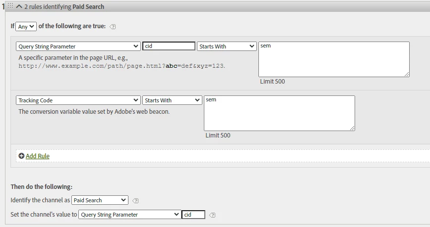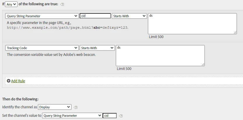 I’m facing an issue with marketing channels where the tracking codes are not being attributed correctly. I have reviewed the configuration multiple times and cannot find anything wrong. All configurations are set within the "Classification Rule Builder," the channels are defined in the "Marketing Channel Manager," and the rules are within the "Marketing Channel Processing Rules."