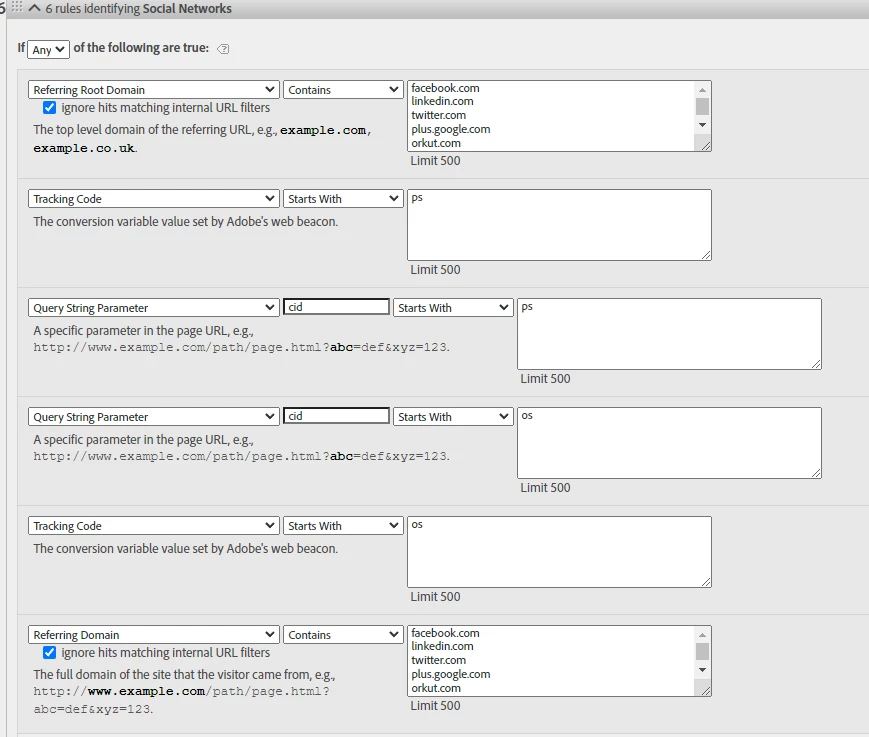 The correct attribution for each of the channels should start with the following tracking codes:
