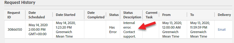 For example the current error I was provided of "Internal error. Contact support." isn't useful to resolve myself and days later am still awaiting a resolution to resolve the issue when it should have been a simple task to create a data warehouse report. Change the Status Descriptions to add additional error messages that help the user resolve the error themselves or at least give more context would be greatly appreciated.