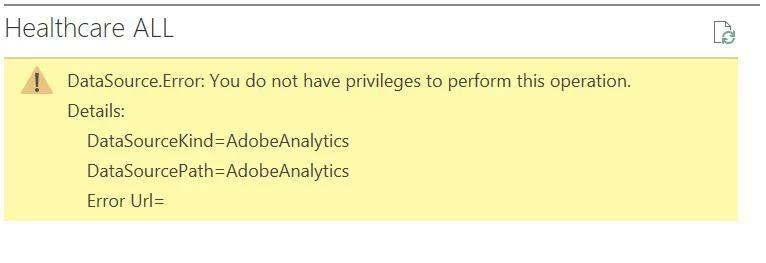 Hi all! I'm facing an issue when trying to integrate my data with PowerBi. After selecting get data, I'm able to see the various folders within Adobe analytics but on preview or trying to load the data, I'm faced with the error: