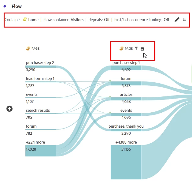 We can right-click individual nodes to break it down but not show a full column (only when we hack it to show a full table) or even the full viz as a table. This could be added quite easily with some new buttons to show the full Flow or just a single column as a table: