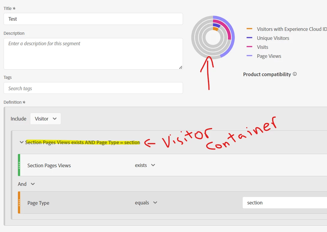 I wasn't sure if you had just the segment at "Visitor" scope, or a container inside of that at Visitor Scope, but in this simple case, the result is the same (both are clearly valid and returning values):