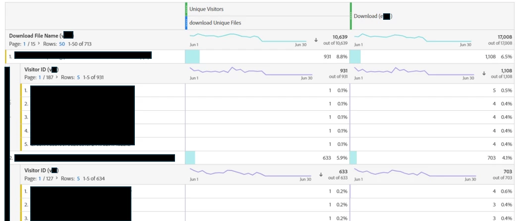 Hi everyone! My boss asked whether it was possible to get total downloads and total unique downloads. This means that if a Visitor downloads 3 times the same file, it would only count as 1.