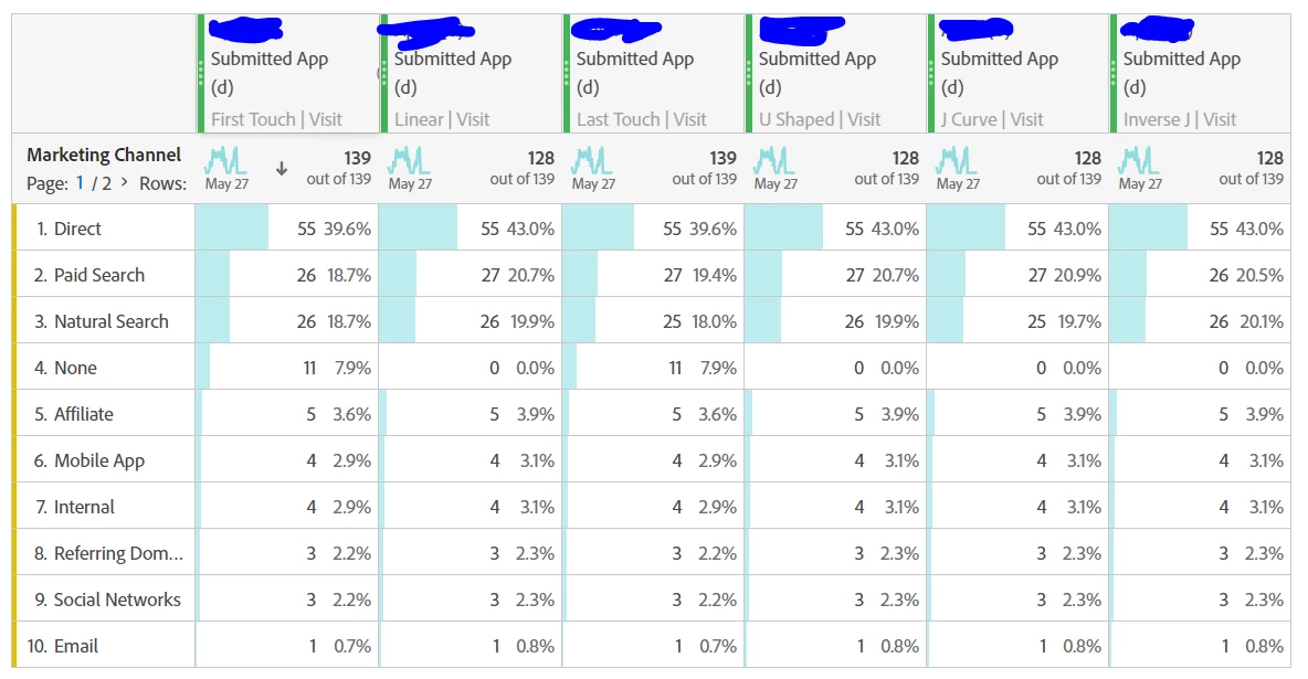 I've come across an issue while using various attribution models and different scopes with my Marketing Channels.
