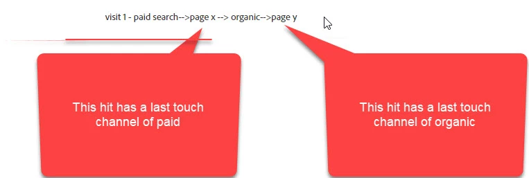 Is adobe technically displaying here multiple last touch channels per visit? If so, what is the reasoning behind this? if i wanted to see multiple channels a user interacted with throughout a visit, I'd use a different dimension that isn't using last touch attribution.