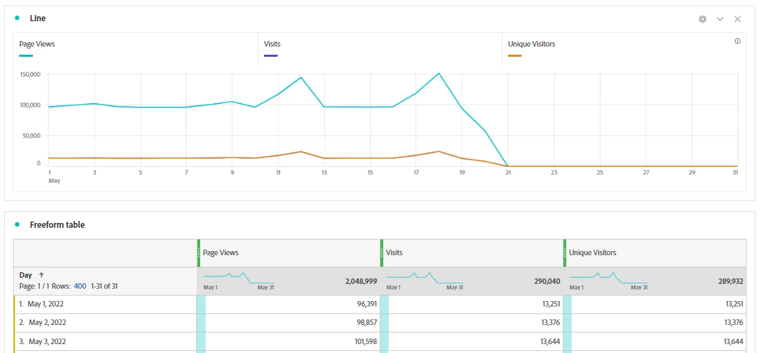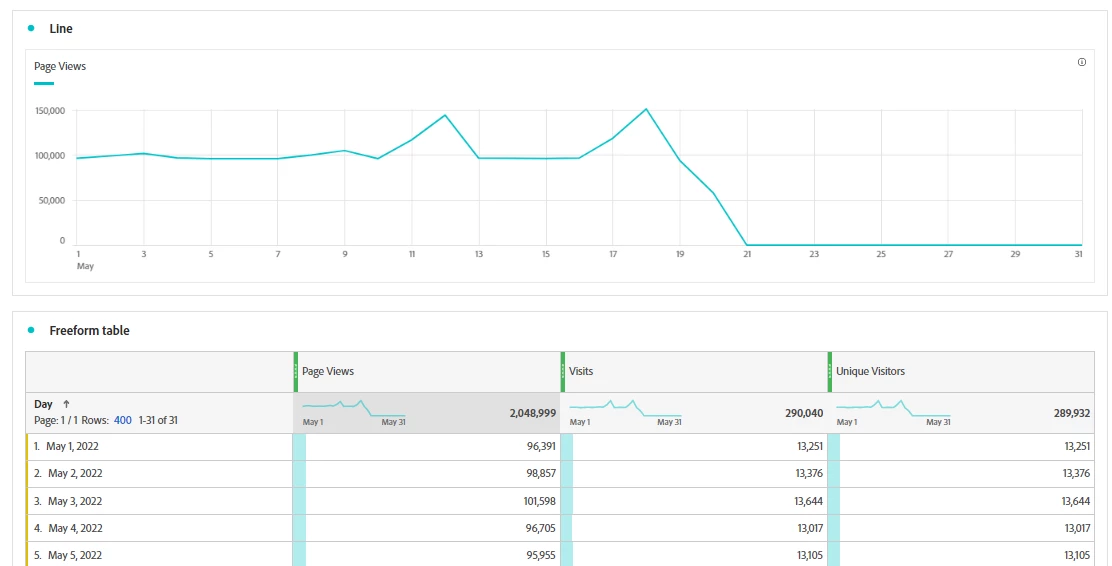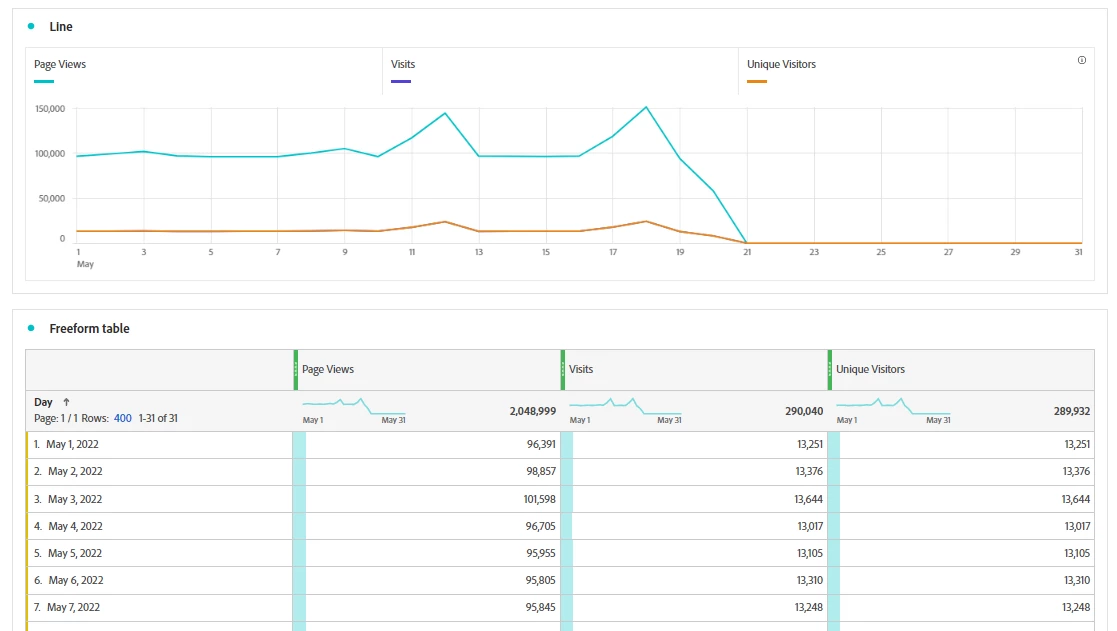 You can see that I have May 1st Visits now selected, but my line graph hasn't changed to reflect the selection.