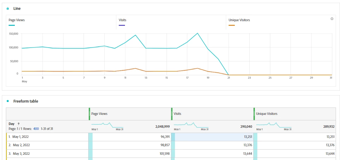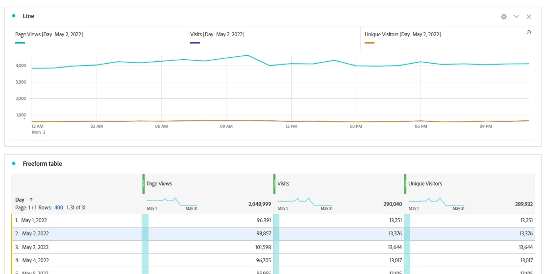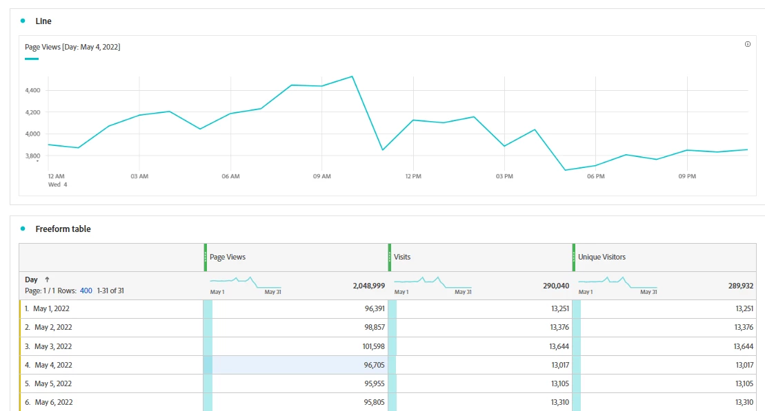 - The third, I actually clicked on the PVs for May 4th (blue highlight) so the data is now showing me PVs for just May 4th
