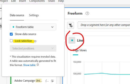 Note: You must have something selected before "Lock Selection" becomes an option, and you can change it to be "Selected Positions", or "Selected Items" depending on what you are trying to do. This works on most (if not all) graphing visualizations.